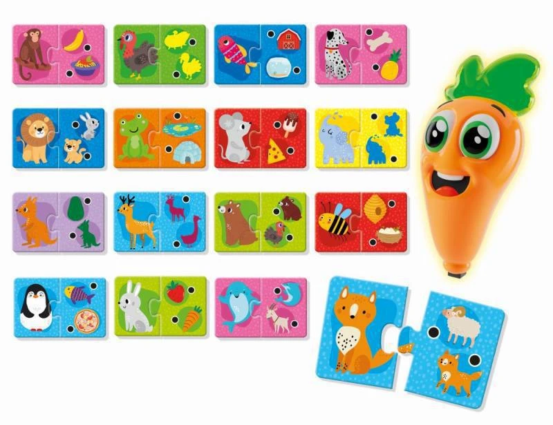 Interaktívny kvízový program so špeciálnym hovoriacim a svietiacim perom! Mnoho zvierat na objavovanie s logickými asociáciami a pomocou hovoriaceho pera!