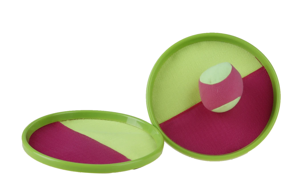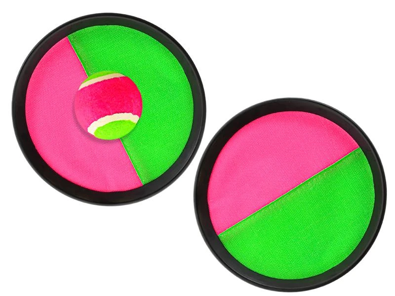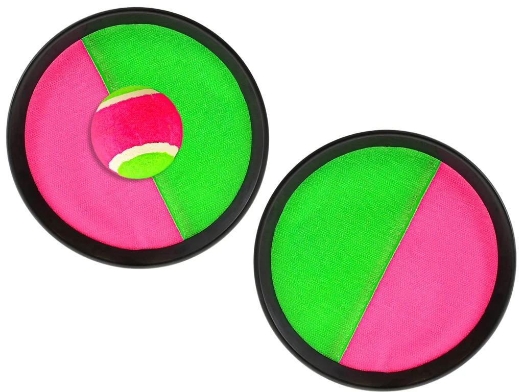 Catch Ball - perfektná zábava na pláž alebo na záhradu od najmenších po dospelých. Hra je pre dvoch hráčov. Jeden hráč hodí loptičku a druhý ju chytá na terč. Loptička sa na terči zachytí pomocou suchého zipsu.