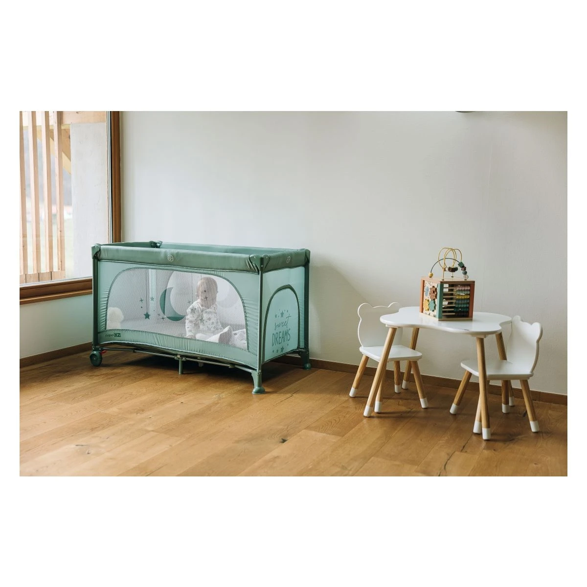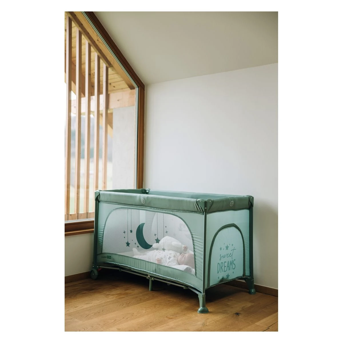 - Rýchlo a ľahko zložiteľná cestovná postieľka s transportnou taškou.