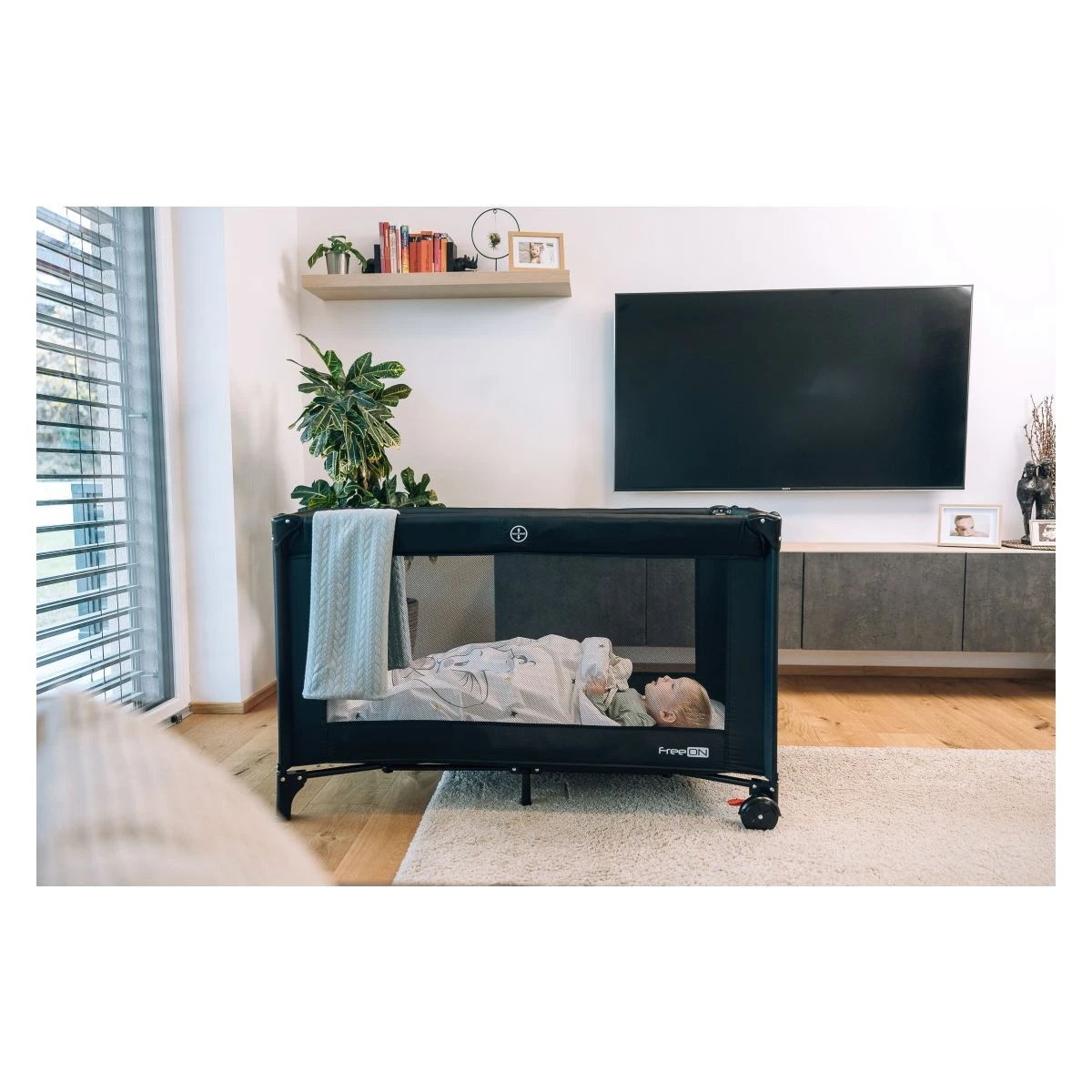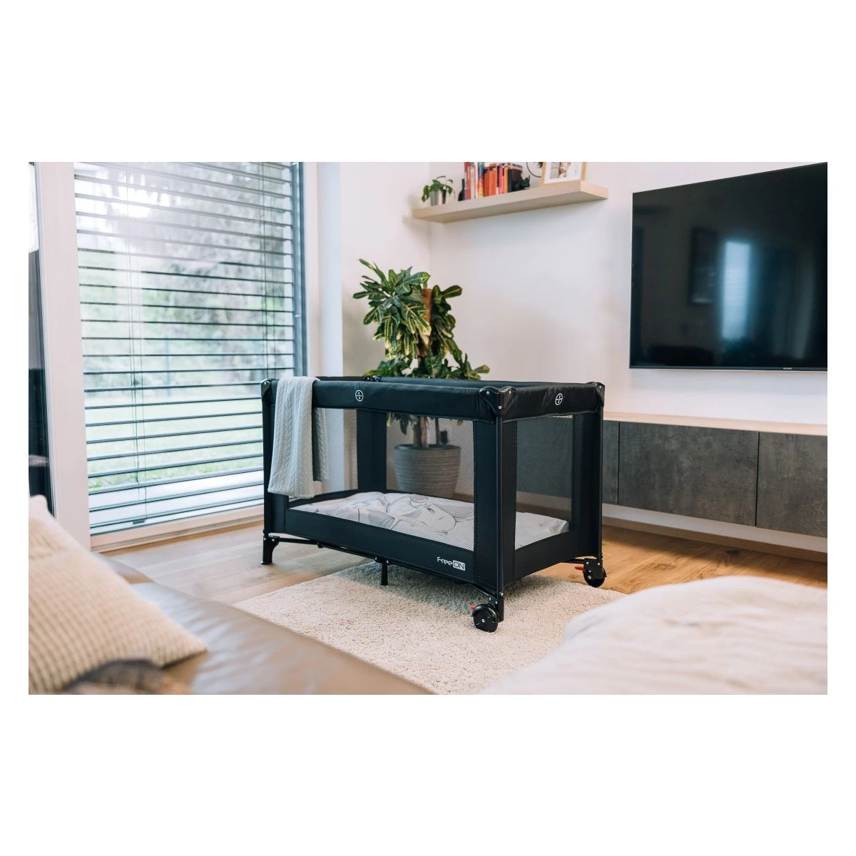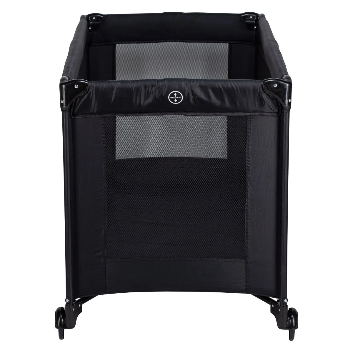 - Bočné sieťované panely na optimálne prúdenie vzduchu a lepší dohľad nad dieťaťom.