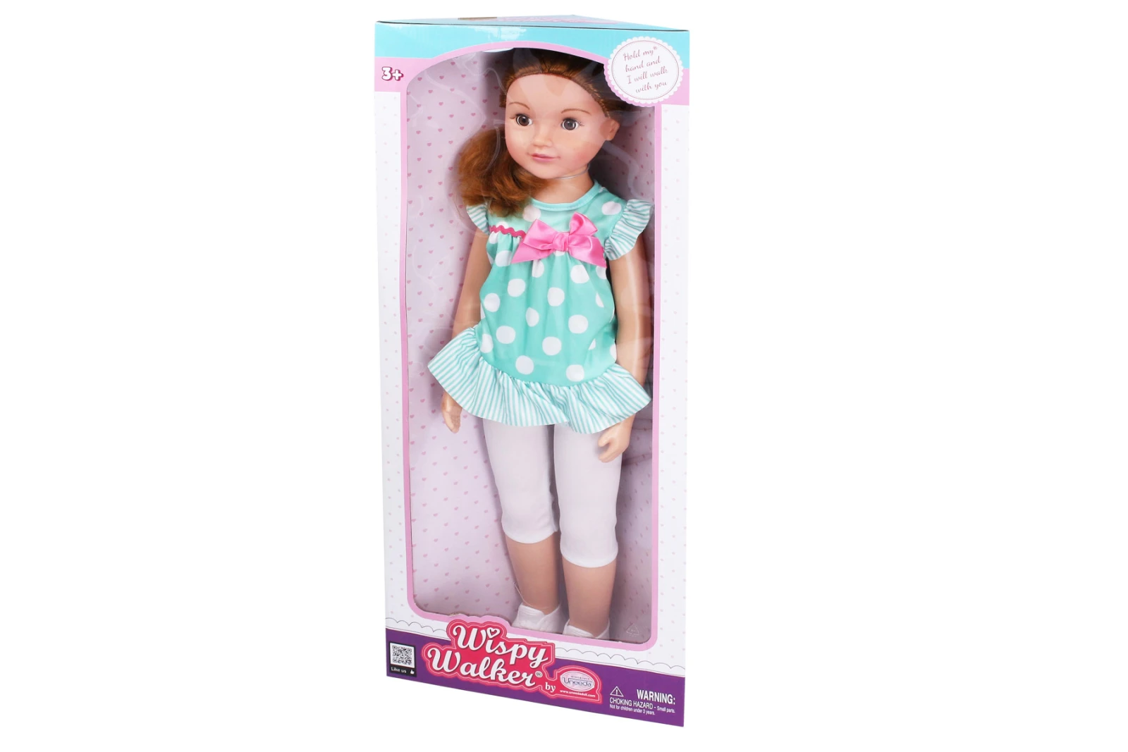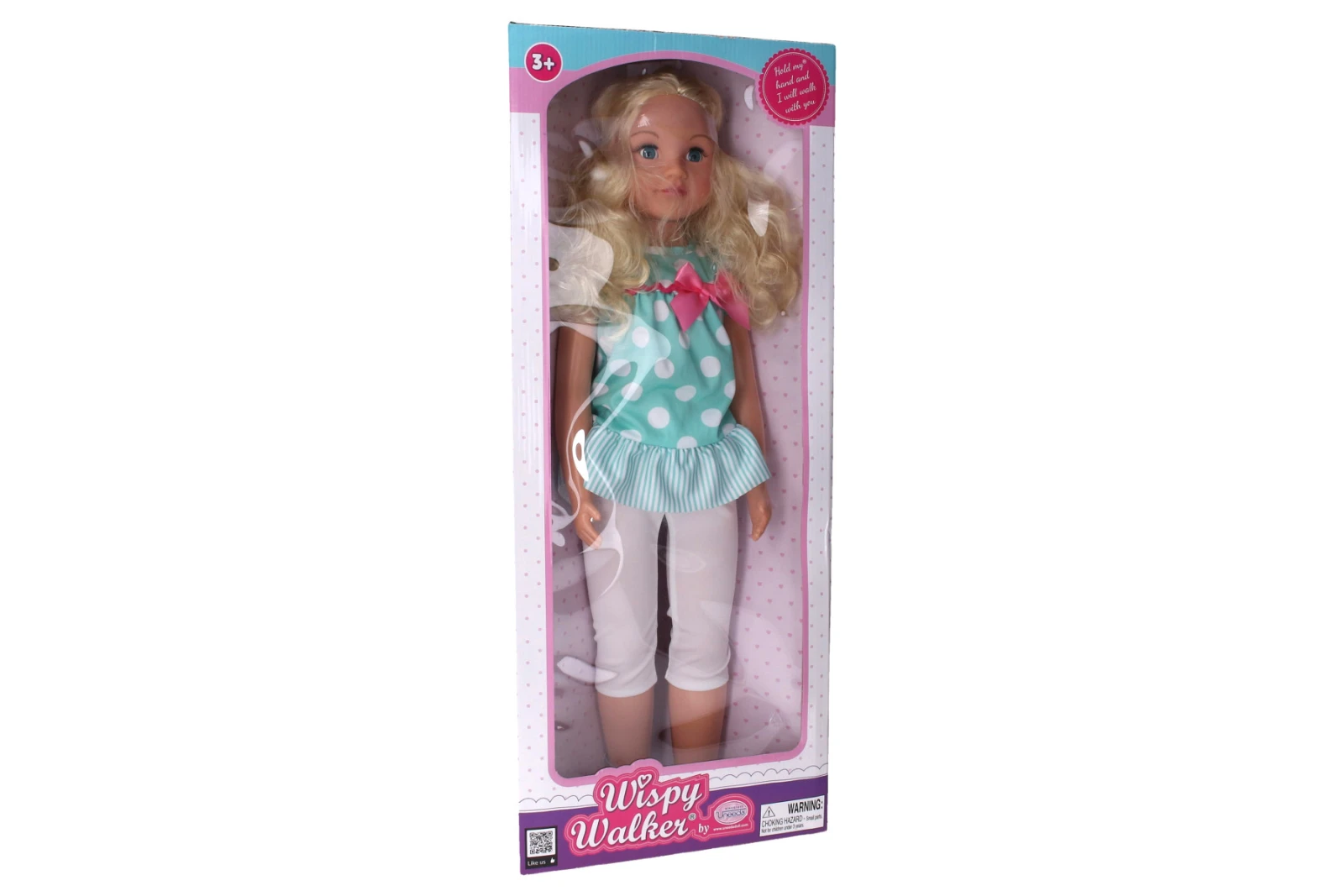 Chodiaca bábika s mašľou. žmurkajúce oči. Veľkosť 70 cm.