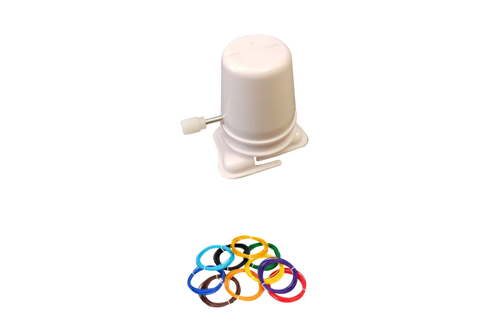 Balenie obsahuje naťahovacie zariadenie, 5 šablón na tvorbu robotov, 12 farebných náplní (2 m), pracovnú podložku a český obal pre jednoduchú orientáciu. 3D pero nie je súčasťou balenia.