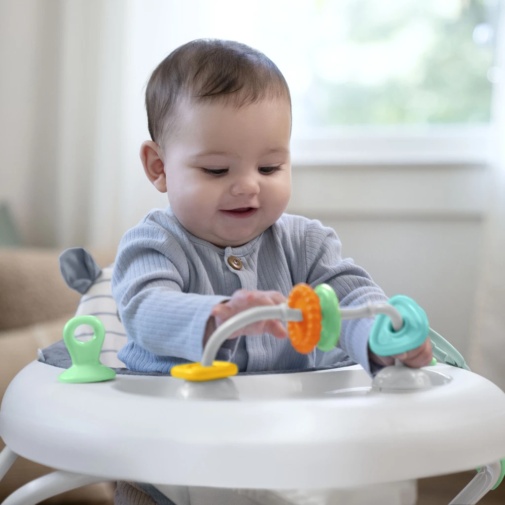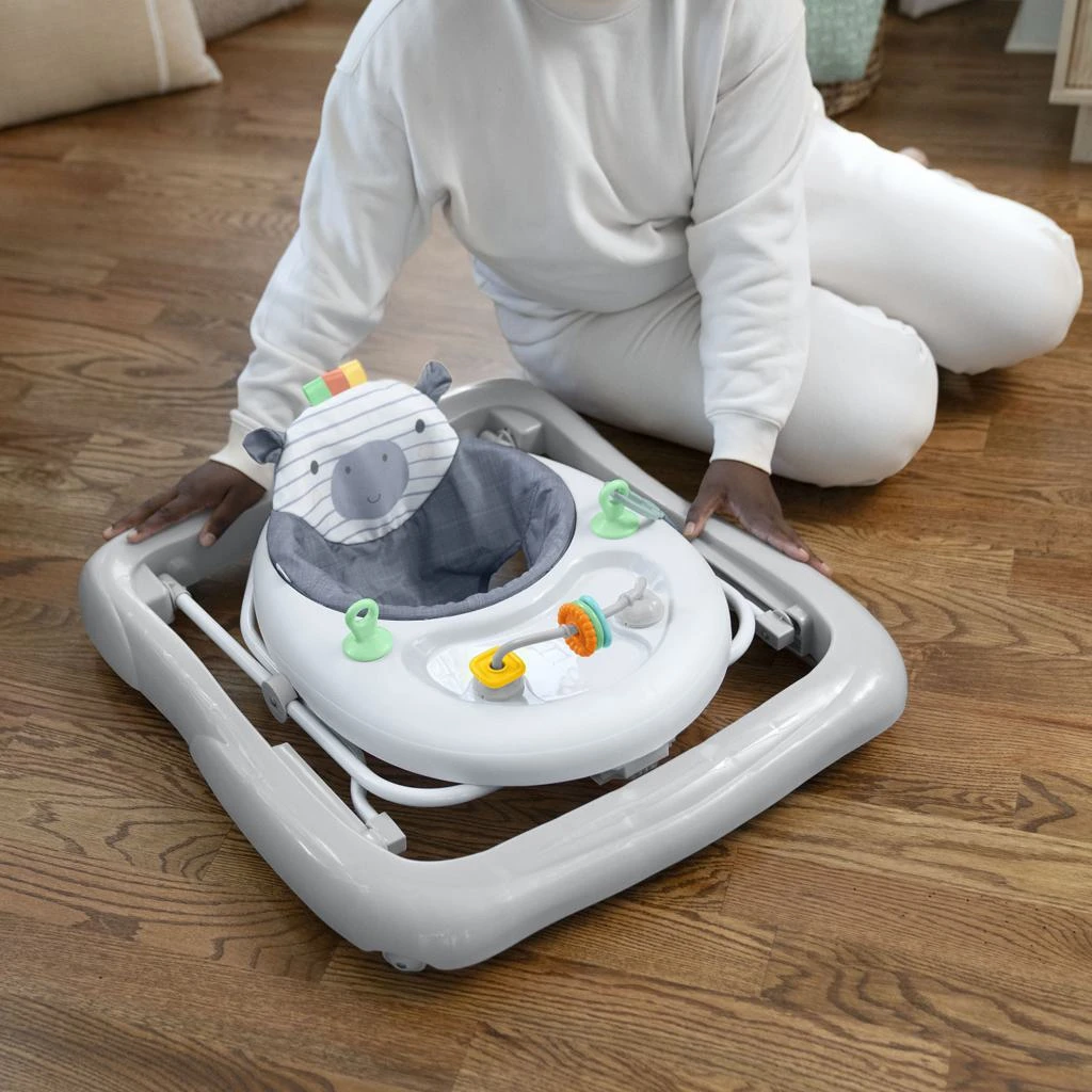 Dajte dieťatku možnosti pre samostatnú hru s odnímateľnou hračkou s korálkami, ktorá sa pripevní na pultík pre zábavu. Použiť môžete aj dve ďalšie pútka na pripojenie obľúbených hračiek dieťaťa. Chodítko je možné nastaviť do troch výškových stupňov, aby spĺňalo potreby dieťatka počas jeho rastu. Vaše dieťa si zamiluje zebru Casiho, ktorá sa objavuje na operadle sedadla a poskytuje pohodlie, podporu a priateľskú tvár. Tento produkt je navrhnutý pre zaneprázdnených rodičov, ktorí potrebujú jednoduchosť a efektívnosť. Chodítko má skladací design pre ľahké uloženie, rukoväť pre pohodlný prenos a je ľahko čistiteľné vďaka prateľnému, odnímateľnému poťahu sedáku. Potrebujete perfektný darček pre ďalšie baby shower? Už ste ho našli.