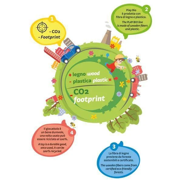Chunky Peggy je nová hra vyrobená z ekologicky udržateľného materiálu, ktorá patrí do radu Play Bio Line. Tento nový rad, 100% vyrobený v Taliansku, sa vyznačuje použitím exkluzívneho biokompozitného materiálu z dreva a plastu, ktorý je navrhnutý tak, aby znižoval emisie CO2 na planéte. Vhodné pre deti od 1 roku.