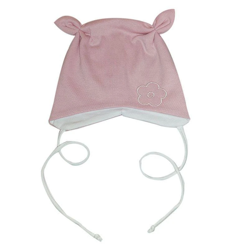 Čiapka detská zaväzovacia Rohatá s kytičkou MKcool Ružová s ružovou kytičkou