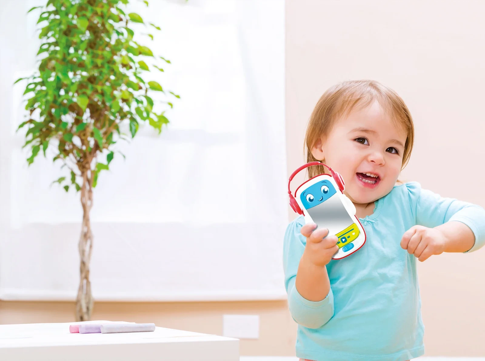 Môj prvý hudobný prehrávač je interaktívna hračka so svetelnými efektmi a bezpečným zrkadlom, ktorá podporuje prirodzenú napodobňovaciu hru už od útleho veku.