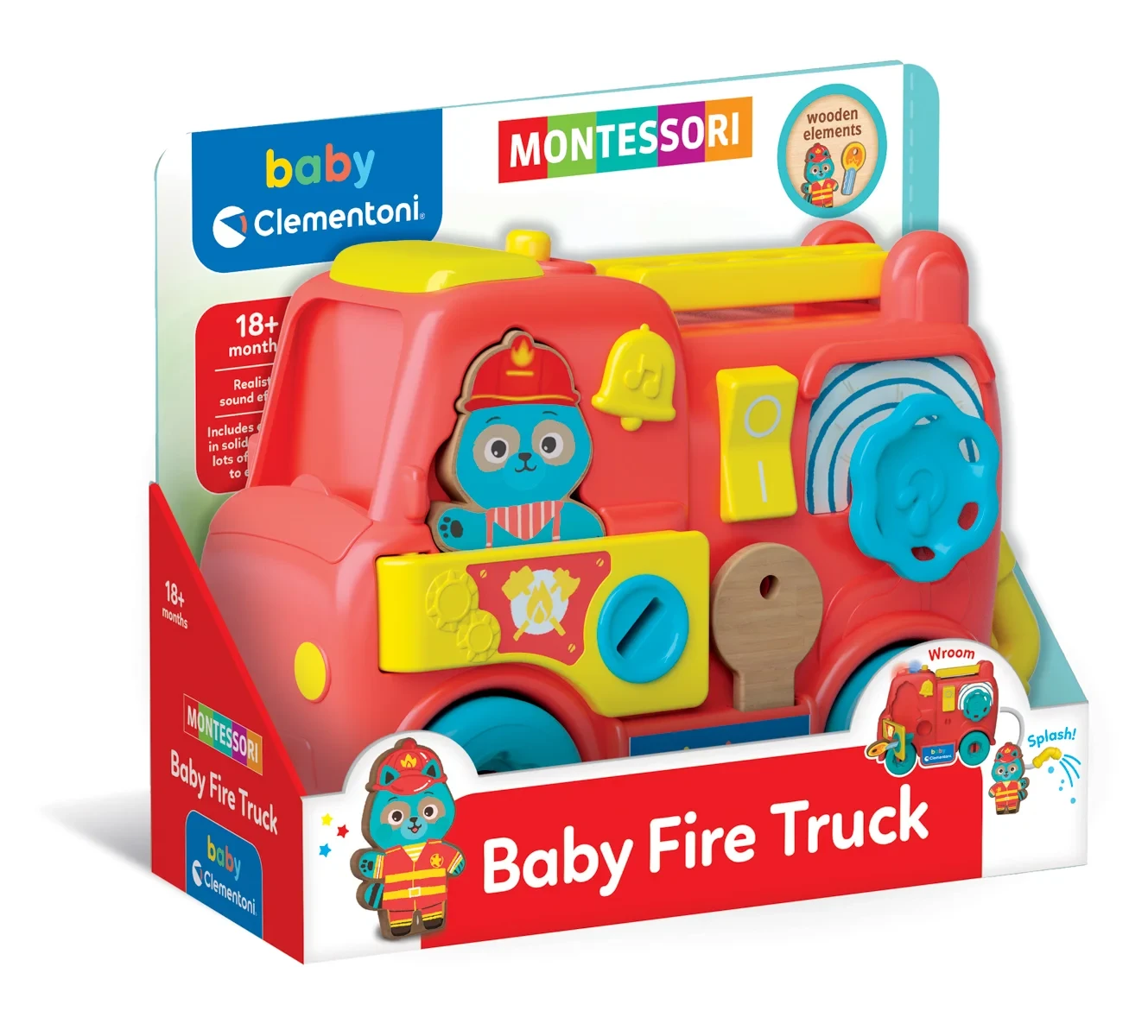 Hracia sada stimuluje manuálne zručnosti detí, prinúti ich vykonávať bežné činnosti a vykonávať každodenné úkony: používanie vypínača, vodovodného kohútika, zvončeka a kľúča. Hasičské auto sa stáva rozšíriteľnou hracou sadou s Montessori detským domčekom Clementoni.