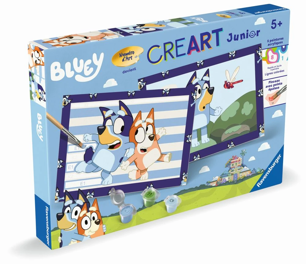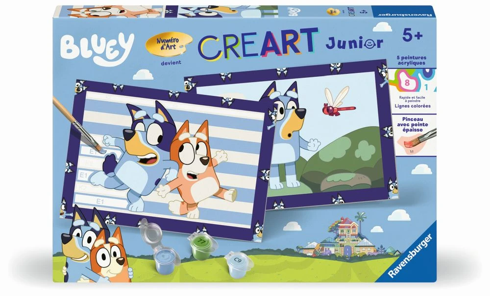 Set obsahuje všetko, čo potrebujete na maľovanie: vysoko kvalitný, pevný kartónový podklad s obrazovou predlohou s očíslovanými plochami, sadu akrylových farieb, štetec, kartónový stojan pre tégliky s farbami a rámček.