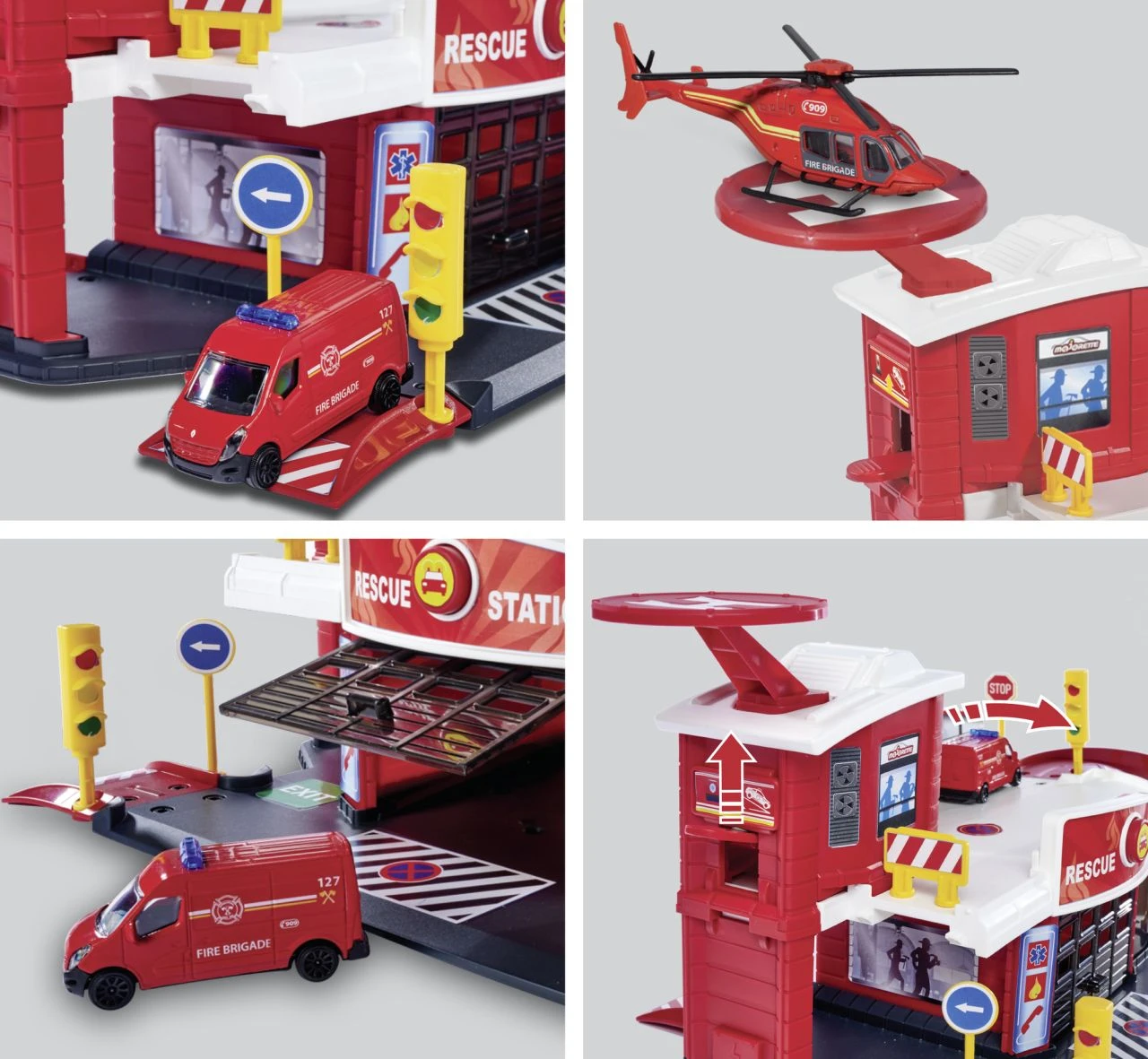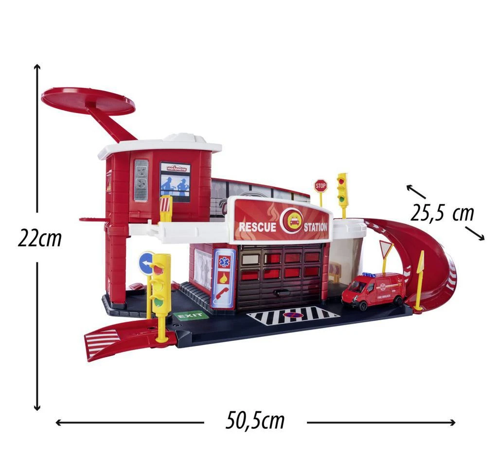 Hasičská stanica, 2 poschodia, heliport, 1 autíčko súčasťou. Rozmery: 55,5 x 25,5 x 22 cm.