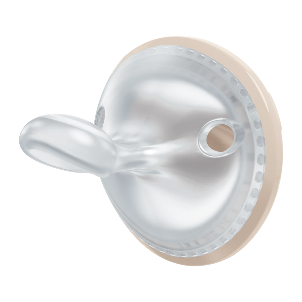 - Mäkký a dôverne známy - silikón je hebký ako pokožka a svojím tvarom pripomína matkinu bradavku pri dojčení, takže prirodzene padne do detskej pusinky.