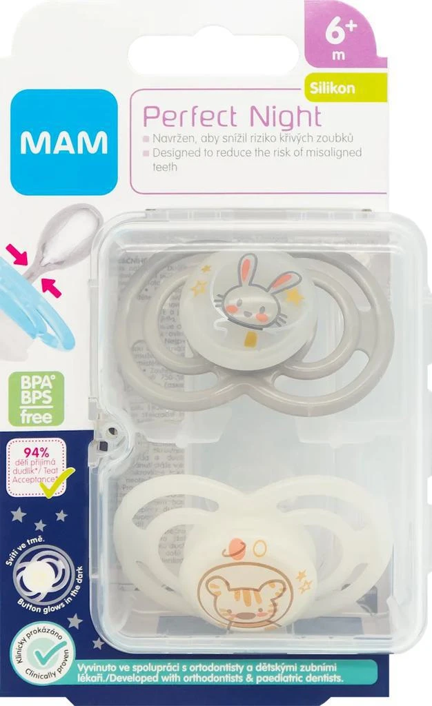 Cumlík Perfect Night silikón 6m+ MAM so sterilizačným boxom