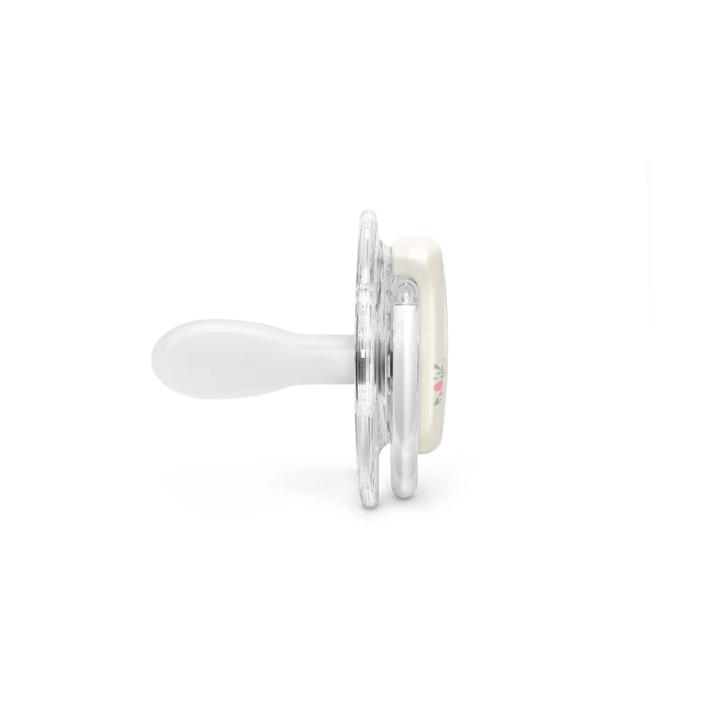 • Priehľadný krúžok – zaisťuje moderný a štýlový vzhľad. Cumlík pôsobí čisto a elegantne, hodí sa ku každému oblečeniu aj štýlu.