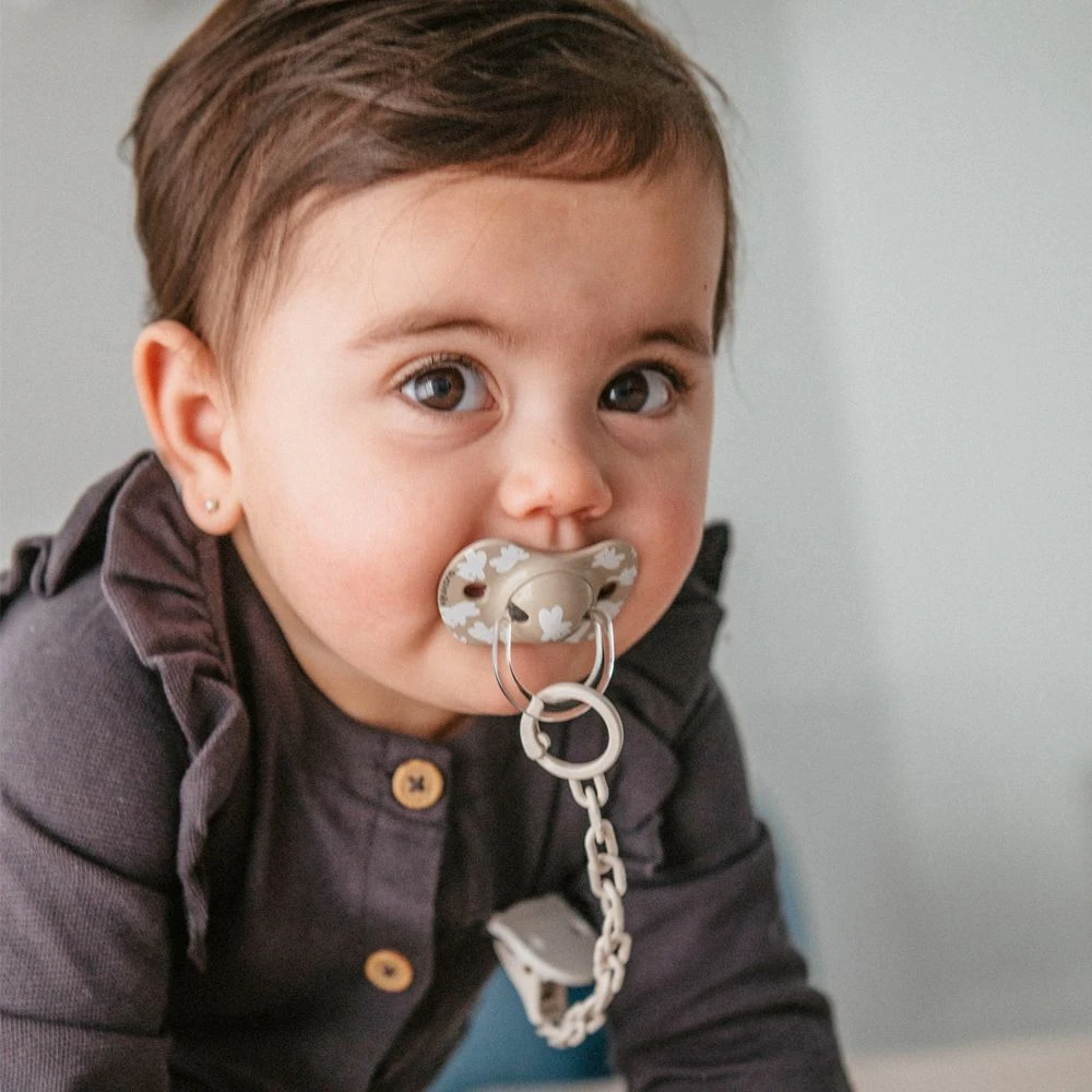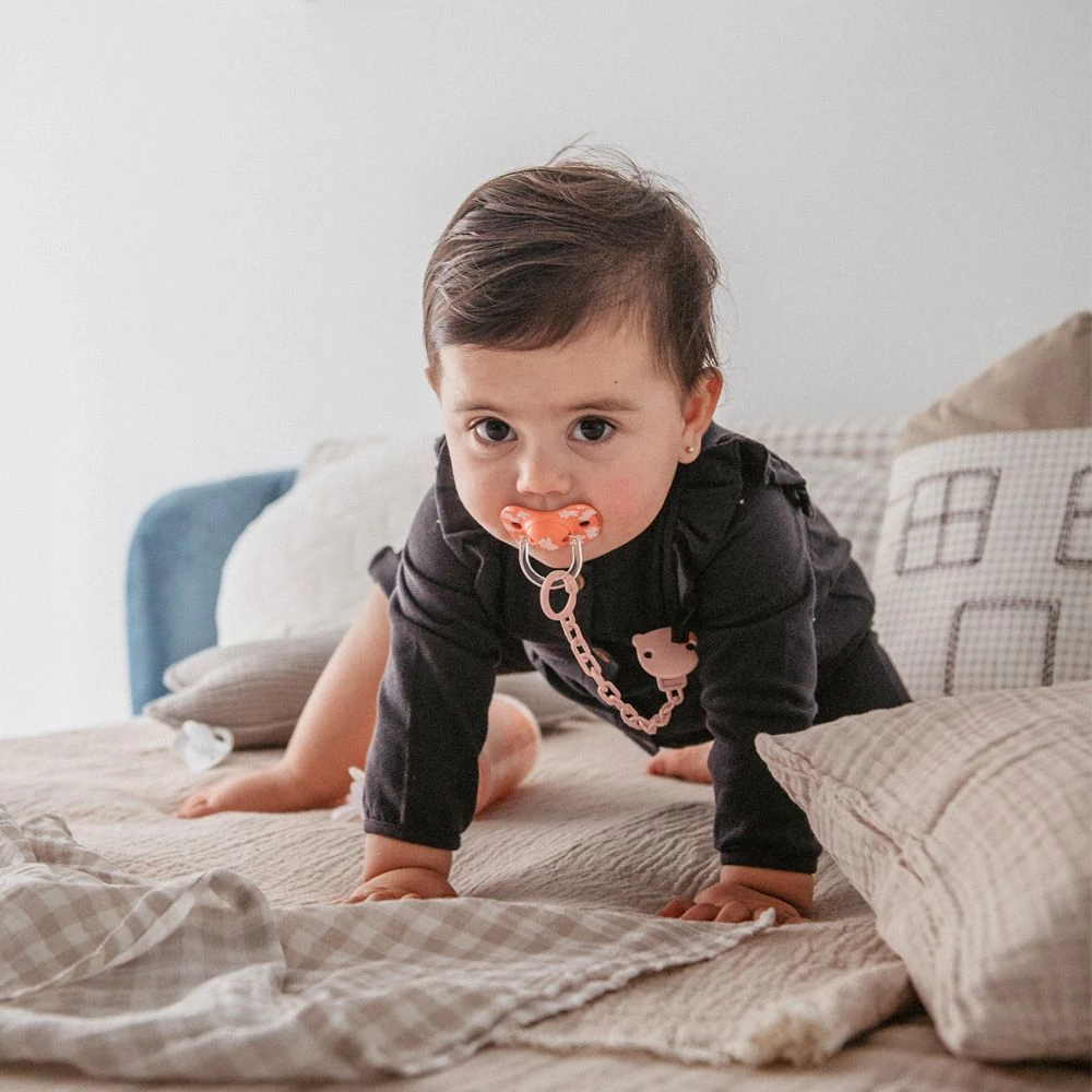 Je veľkým pomocníkom pre pokoj vás aj vášho bábätka, či už pri spánku alebo na vychádzke. Je dokázané, že sanie cumlíka uvoľňuje endorfín, takzvaný hormón šťastia, ktorý prináša dieťaťu príjemný upokojujúci pocit. Doprajte dieťaťu cumlík namiesto prstov či pästičky, pretože tento spôsob upokojovania môže veľmi porušiť budúci dentálny vývoj. Všetky cumlíky aj cumlíky sú podporené a vyrábané v spolupráci s Asociáciou španielskych detských ortodontistov a rešpektujú prirodzený vývoj ďasien, zubov i poschodia dieťaťa.