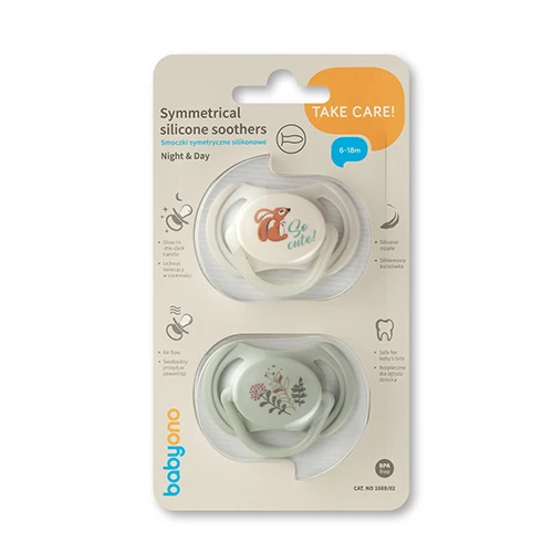 - Denný a nočný cumlík – v balení nájdete jeden klasický a jeden so svietiacou rukoväťou, pripravený upokojiť dieťa aj v noci