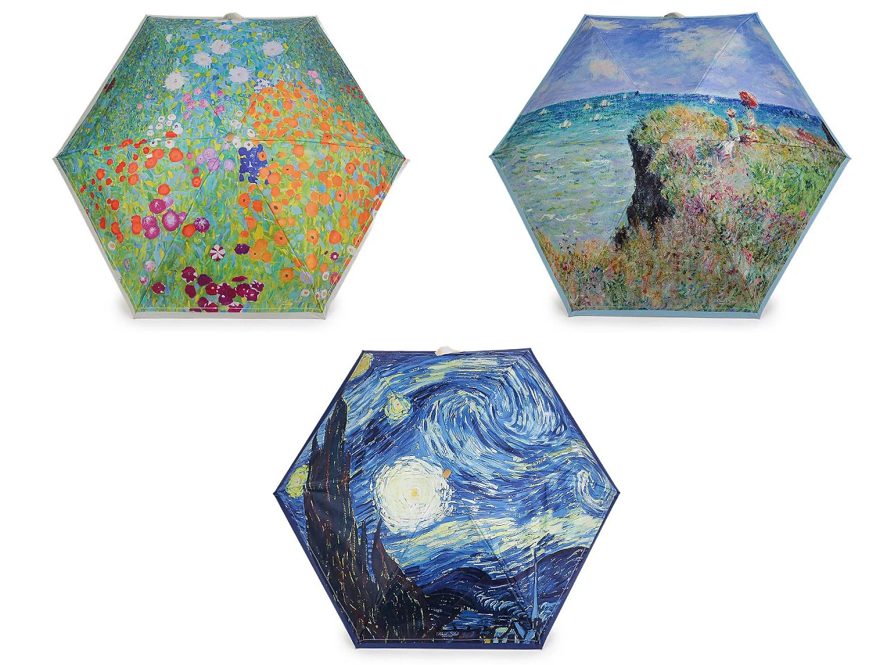 Skladací mini dáždnik má poťah s motívmi obrazov slávnych umeleckých diel.