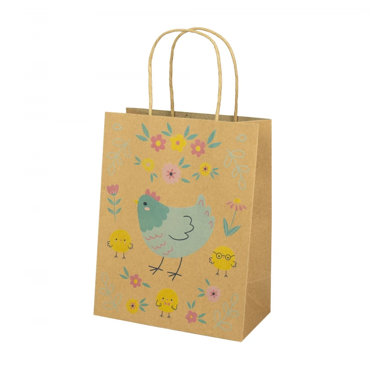 Malá darčeková taška s motívom sliepočky s kuriatkami je milým a veselým doplnkom na zabalenie menších darčekov. Jemný veľkonočný motív pôsobí hravo a zároveň elegantne, takže sa skvele hodí na jarné obdarovanie, veľkonočnú nádielku aj drobné pozornosti pre deti i dospelých. Vďaka praktickému formátu je taška vhodná na sladkosti, dekorácie, kozmetiku alebo iné menšie darčeky. Pevné prevedenie a pohodlné uchá uľahčujú prenášanie aj samotné odovzdanie darčeka.