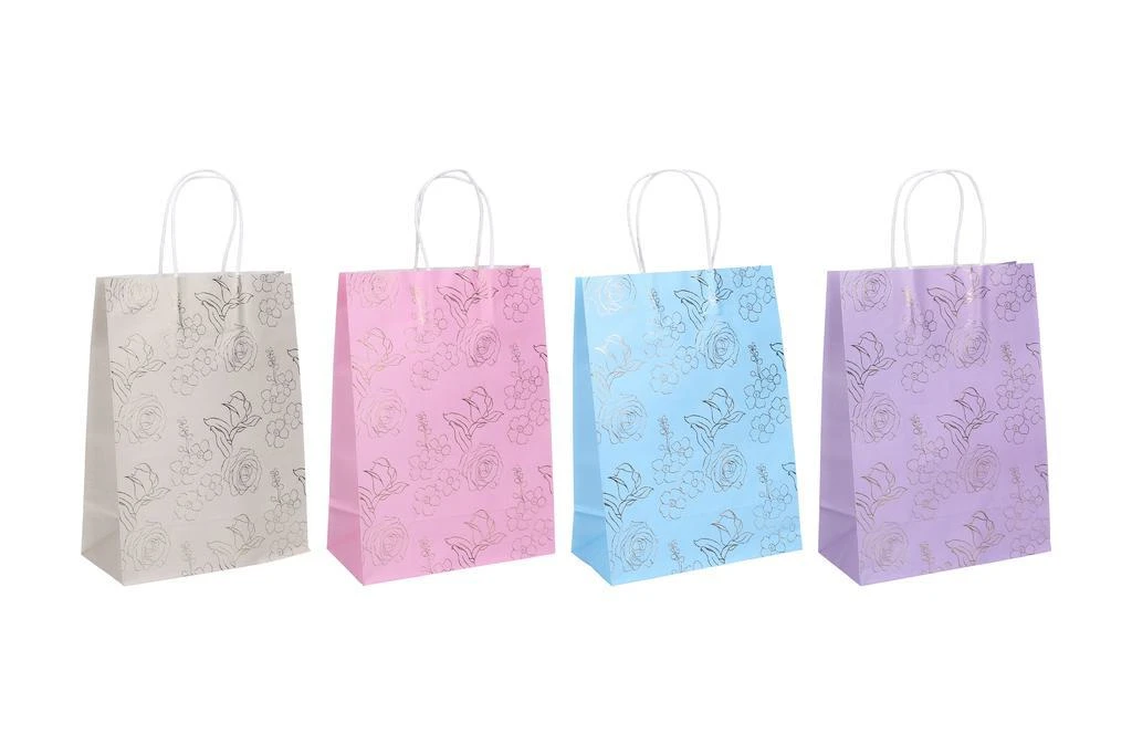 Darčeková taška v štyroch farebných prevedeniach: šedá, fialová, ružová, modrá.