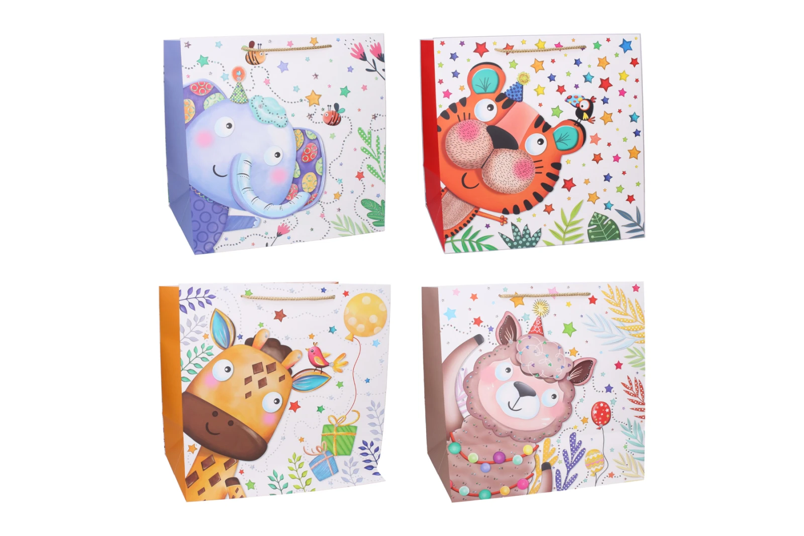 4 varianty zvieratiek: tiger, slon, ovečka a žirafa.