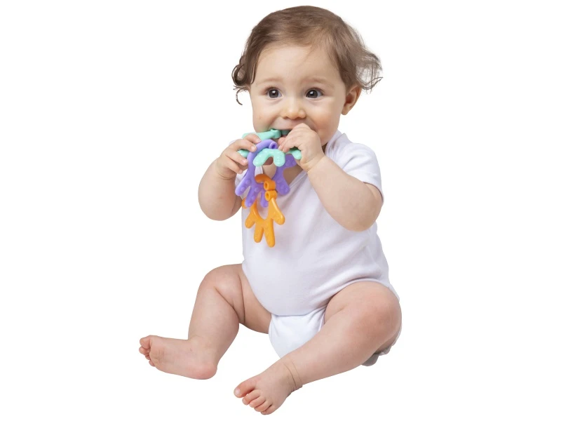 - Praktické použitie na cestách - hryzátka je možné ľahko pripevniť na kočík alebo autosedačku pre zábavu kdekoľvek.