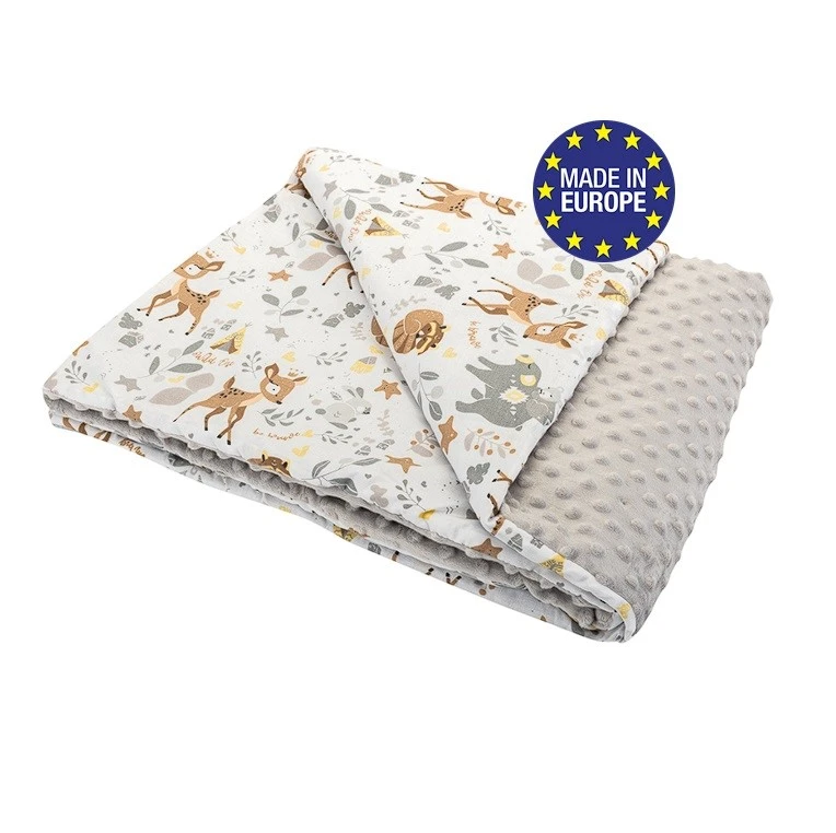 Materiál je šetrný k detskej pokožke, veľmi príjemný na dotyk. Deka má v živote bábätka mnoho uplatnení: ako hracia deka, deka do kočíka či do postieľky. Deka je vďaka výplni vhodná po celý rok, ako do chladného leta, tak do jesene. Deka chráni bábätko pred vetrom a nepriaznivým počasím.