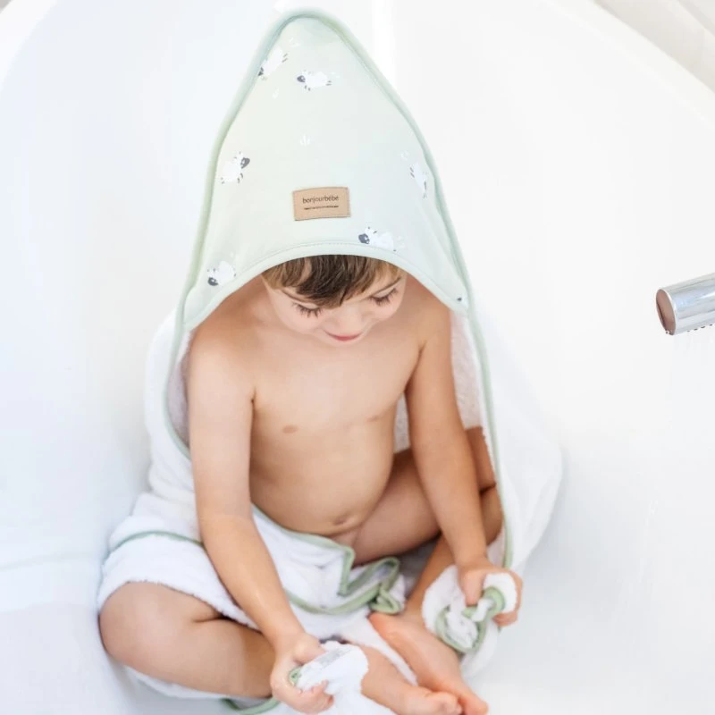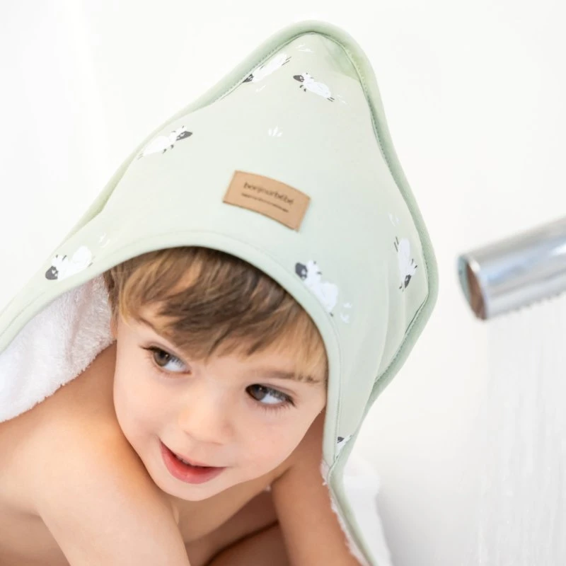 kapucňa uľahčuje sušenie a udržuje teplo po kúpaní