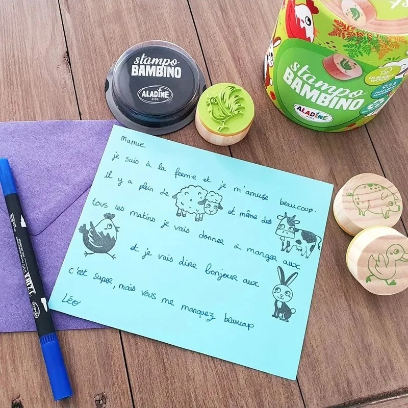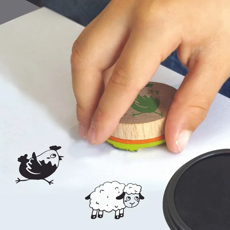 Detská drevená pečiatky Aladine Stampo Bambino, 8 ks - Farma