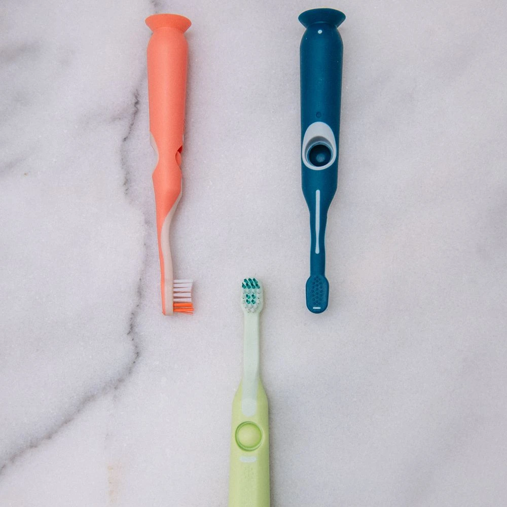 - Rukoväť s protišmykovým povrchom a mäkkou časťou sa dobre drží aj malou detskou rukou - ideálna pre prvé samostatné čistenie zúbkov.