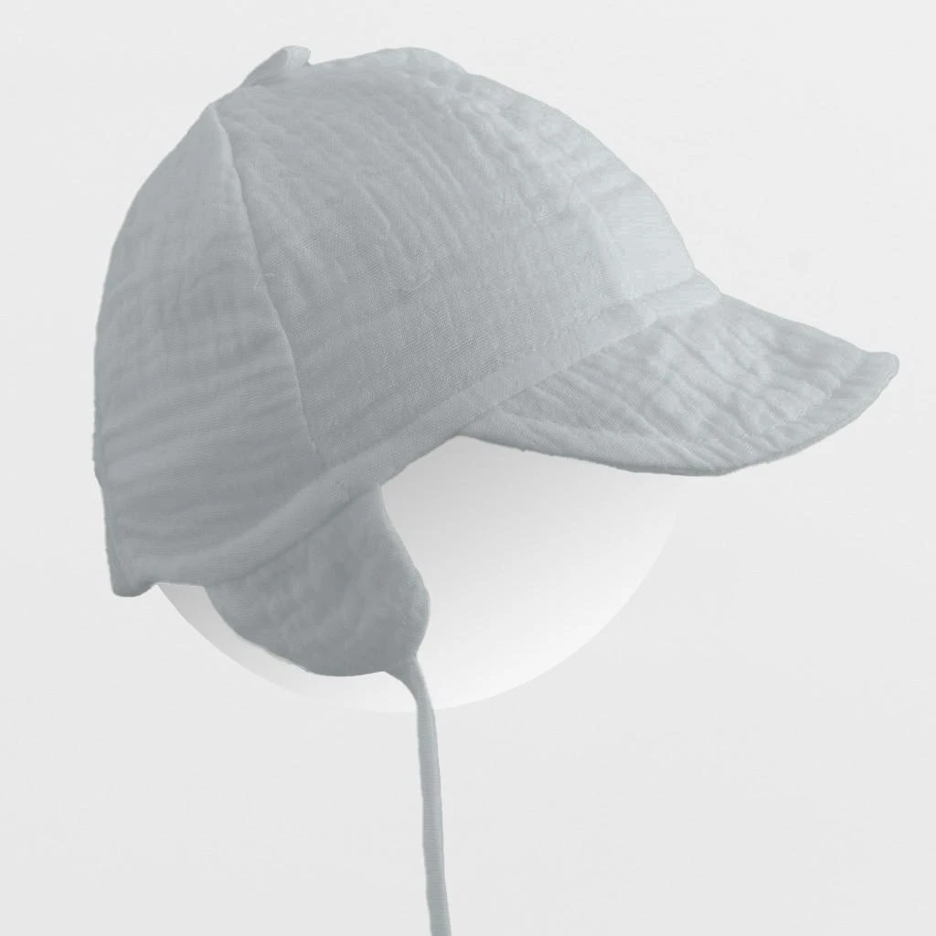 Detská letná mušelínová čiapočka so šiltom svetlo šedá New Baby
