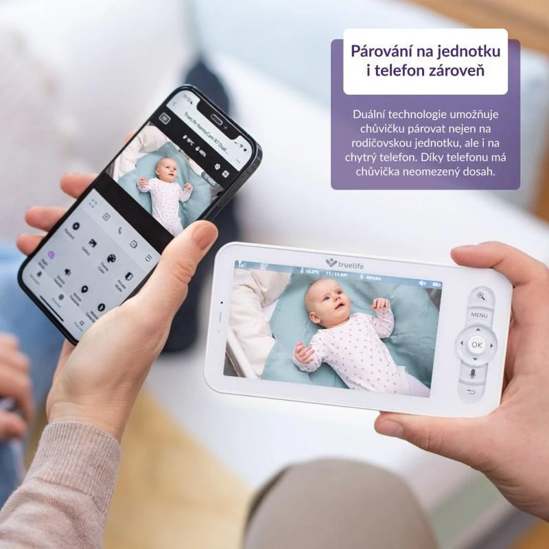 Opatrovateľku je vďaka duálnej technológii možné spárovať ako na rodičovskú jednotku, tak na telefón či iné inteligentné zariadenie, na ktorom môžete dieťa sledovať vďaka aplikácii TrueLife Smart, ktorá je kompletne v slovenskom jazyku.