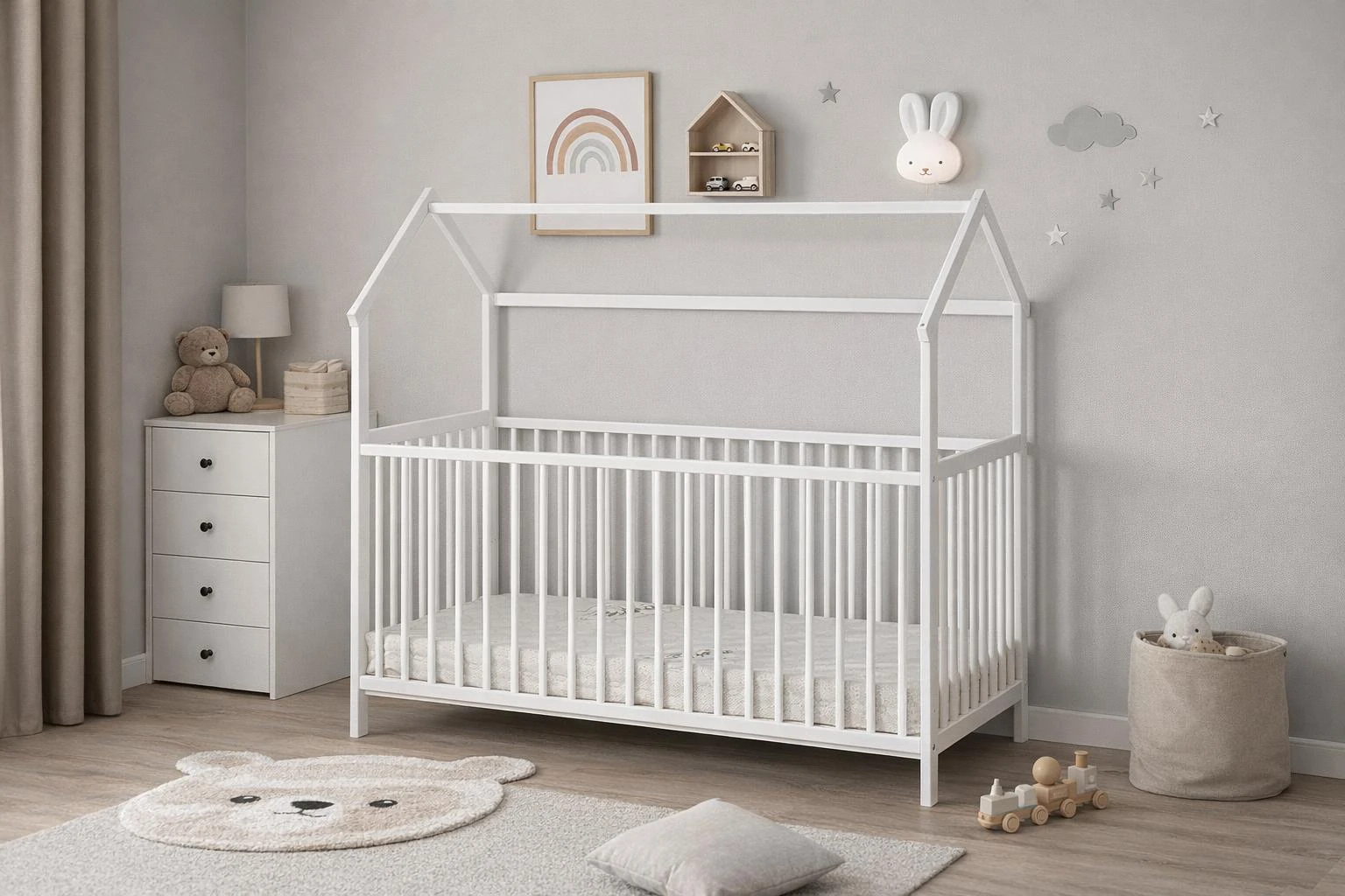 Detská postieľka domček Rika s vyberacími priečkami borovica biela 120 x 60 cm Scarlett