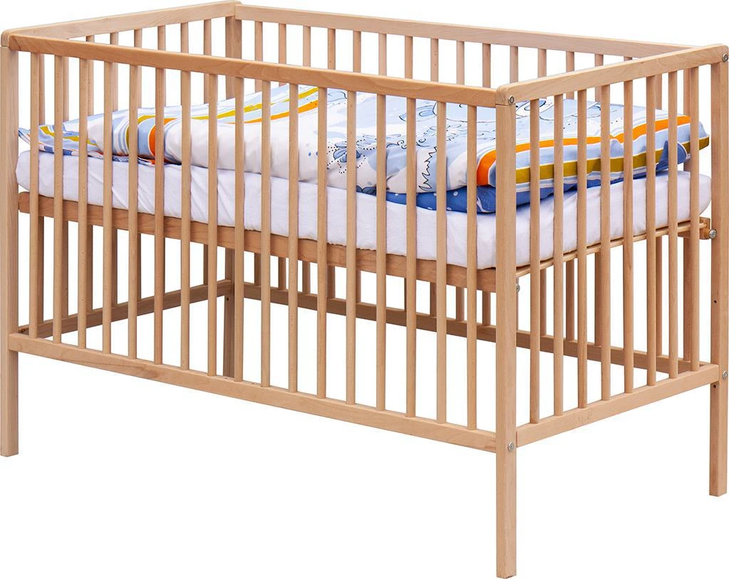 1. Detská drevená postieľka 120 x 60 cm - prírodný, masív borovice, 3 vyberacie priečky, 3 polohy roštu,