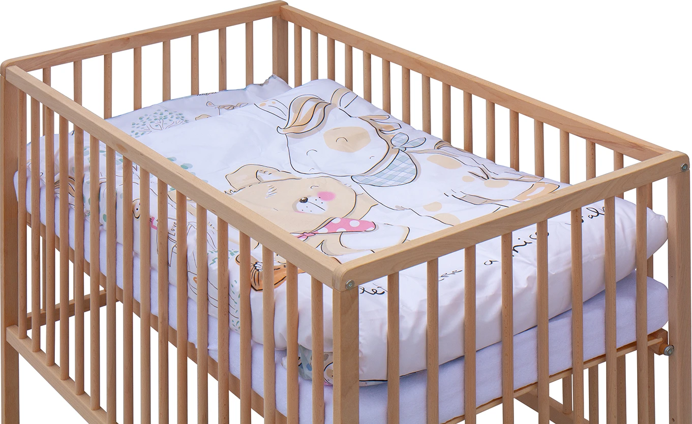 Detská postieľka prírodná s kompletnou výbavou 120 x 60 cm Subra Scarlett
