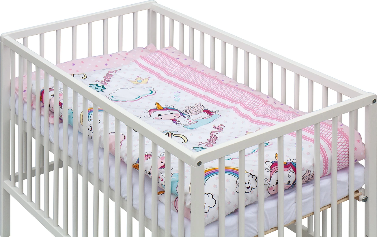 Detská postieľka s kompletnou výbavou 120 x 60 cm biela Oniko Scarlett