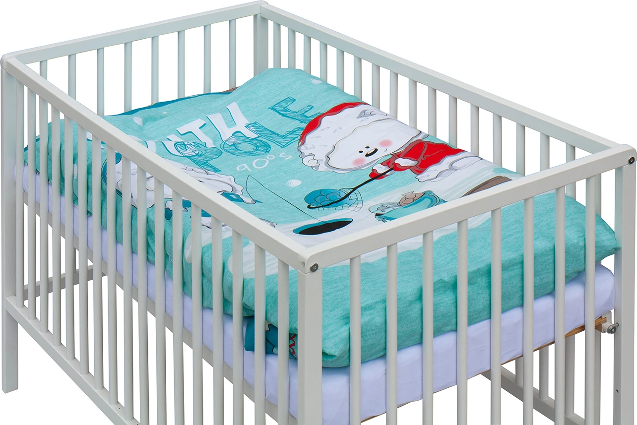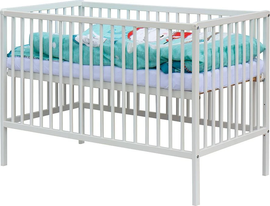 1. Detská drevená postieľka 120x60 cm - biela, masív buk, 3 vyberacie priečky, 3 polohy roštu