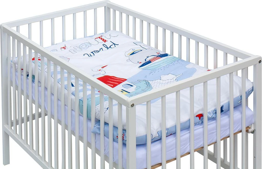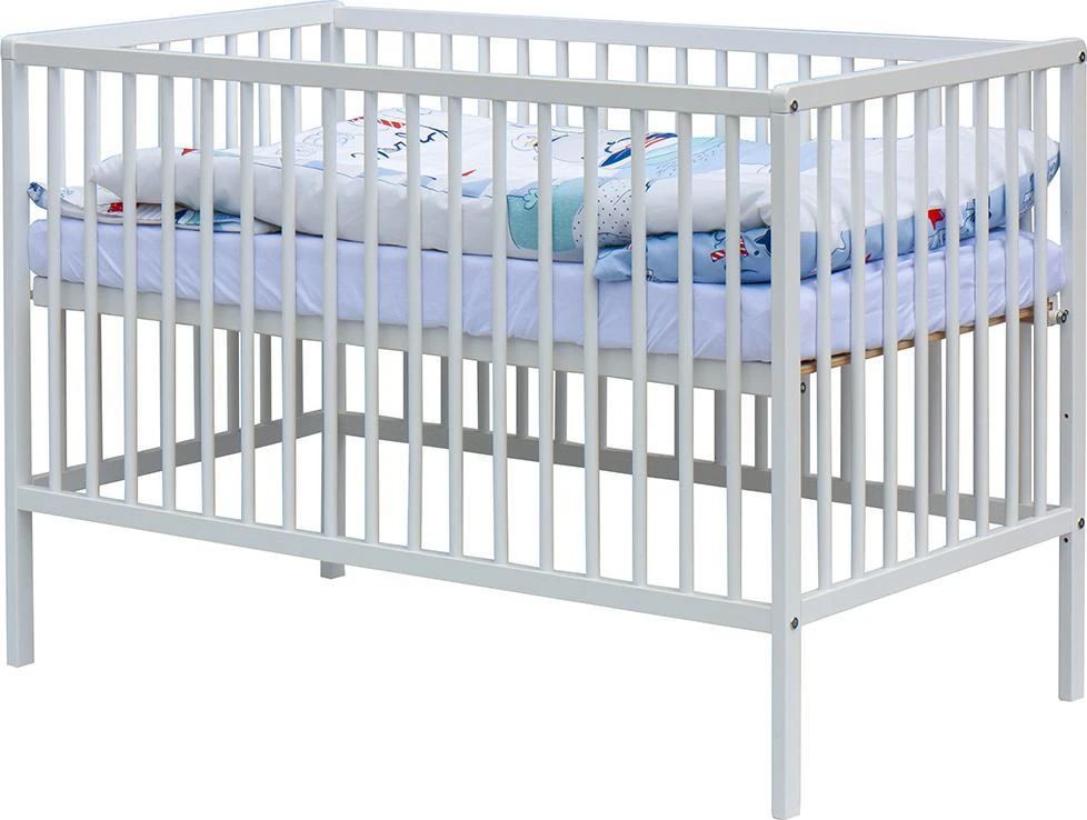 1. Detská drevená postieľka 120x60 cm - biela, masív buk, 3 vyberacie priečky, 3 polohy roštu