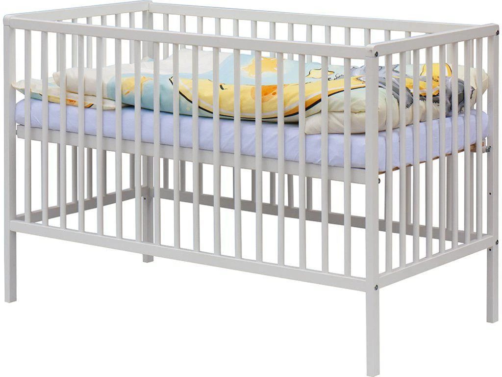 1. Detská drevená postieľka 120x60 cm - biela, masív buk, 3 vyberacie priečky, 3 polohy roštu