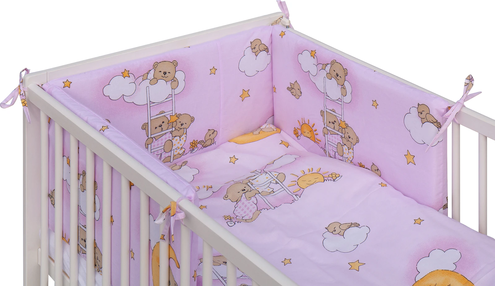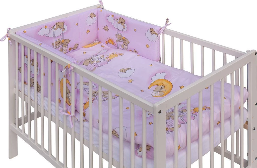 Detská postieľka s kompletnou výbavou 120 x 60 cm, mráčik ružová Scarlett