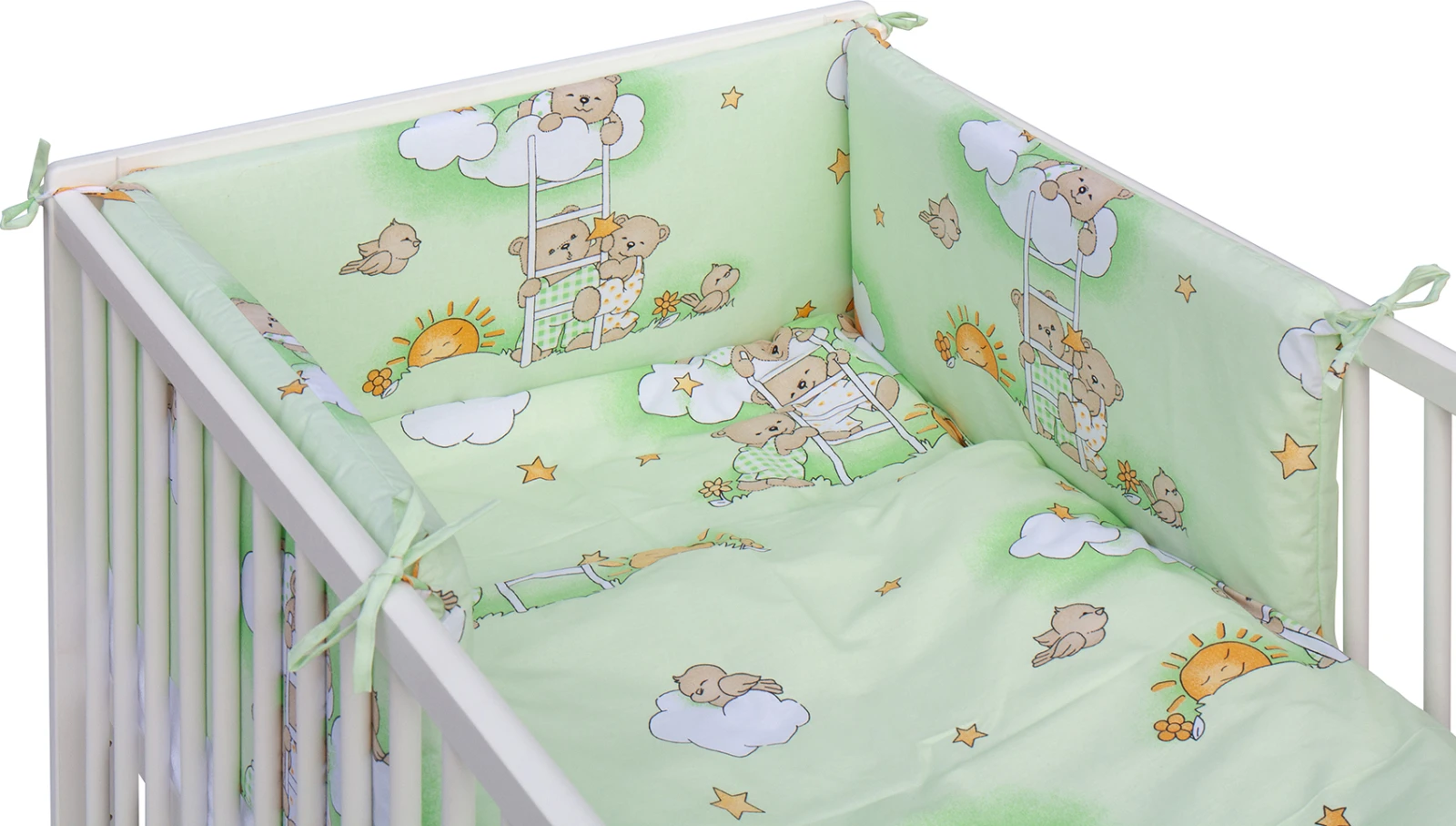 Detská postieľka s kompletnou výbavou 120 x 60 cm, mráčik zelená Scarlett