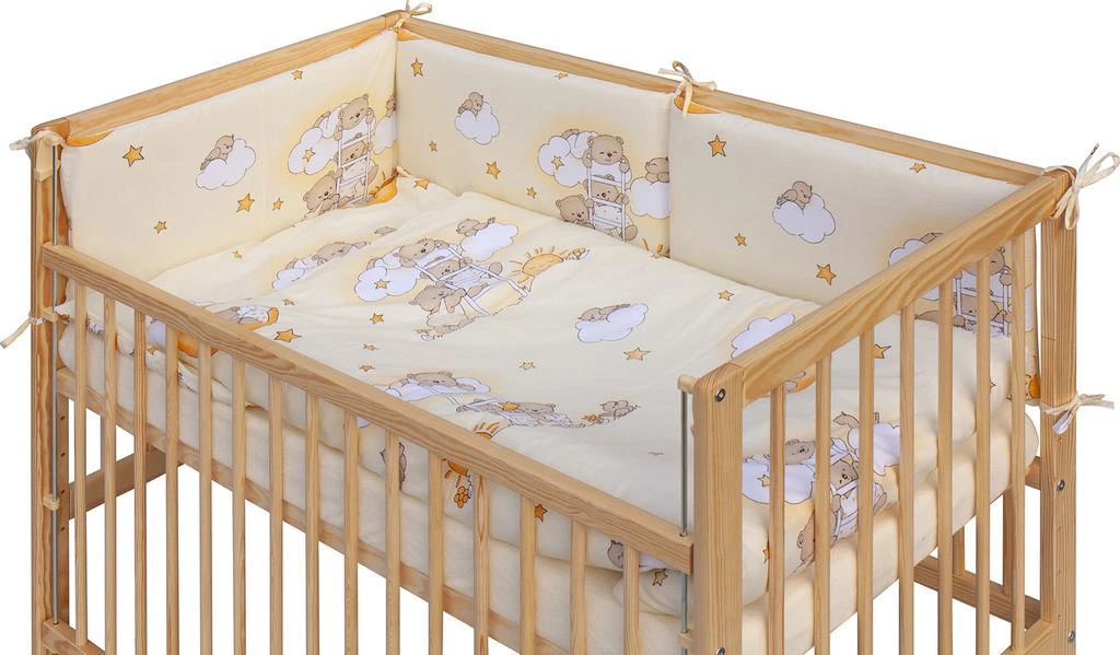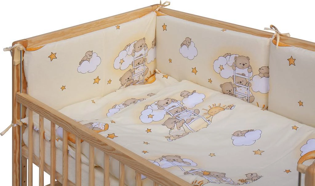Detská postieľka s kompletnou výbavou 120 x 60 cm, mráčik žltá Scarlett