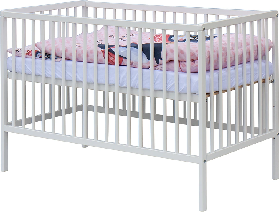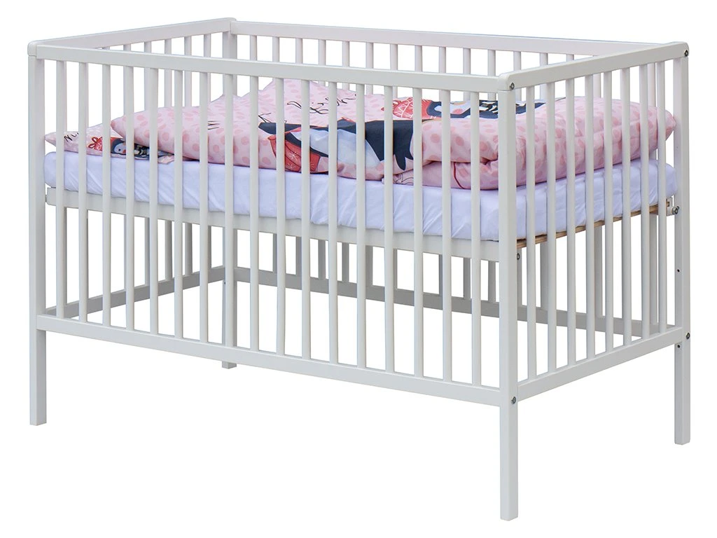 1. Detská drevená postieľka 120x60 cm - biela, masív buk, 3 vyberacie priečky, 3 polohy roštu