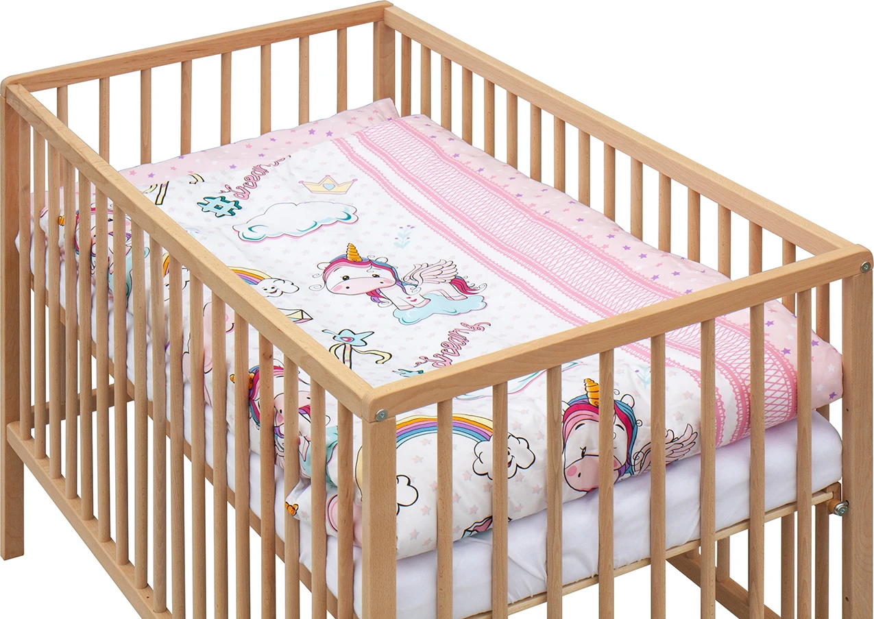 Detská postieľka s kompletnou výbavou 120 x 60 cm prírodná Oniko Scarlett
