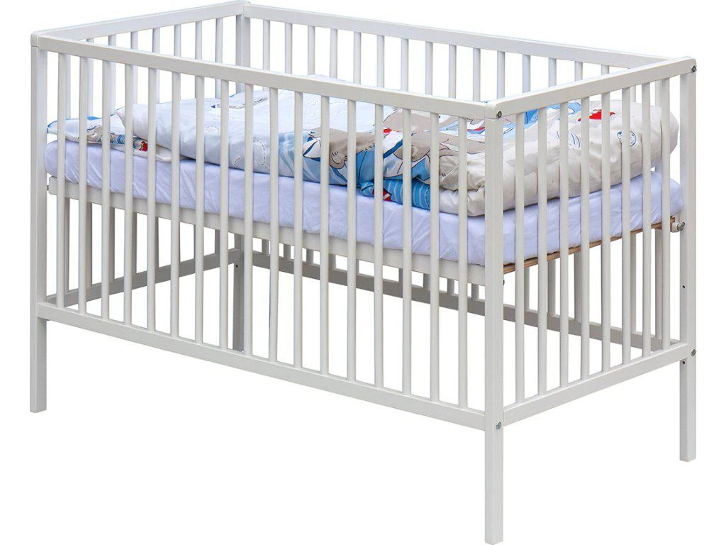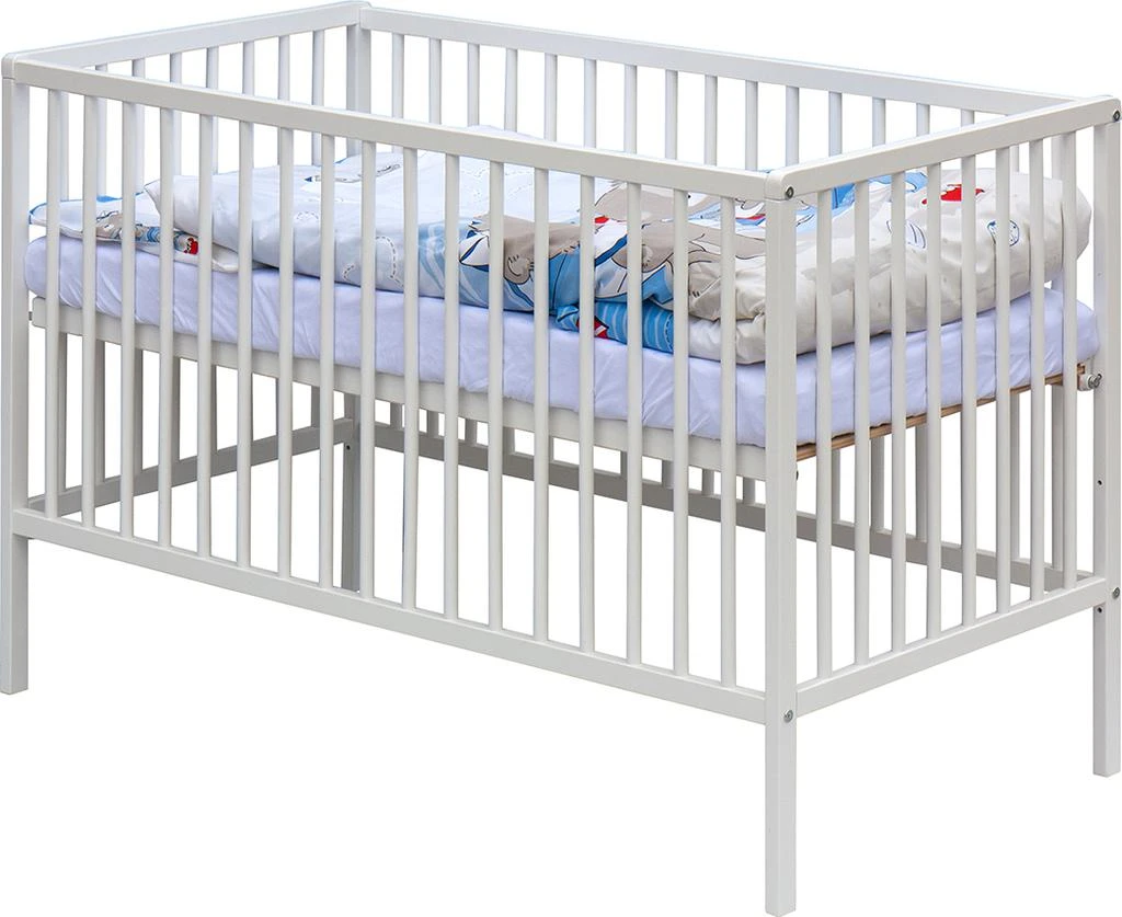 1. Detská drevená postieľka 120x60 cm - biela, masív buk, 3 vyberacie priečky, 3 polohy roštu