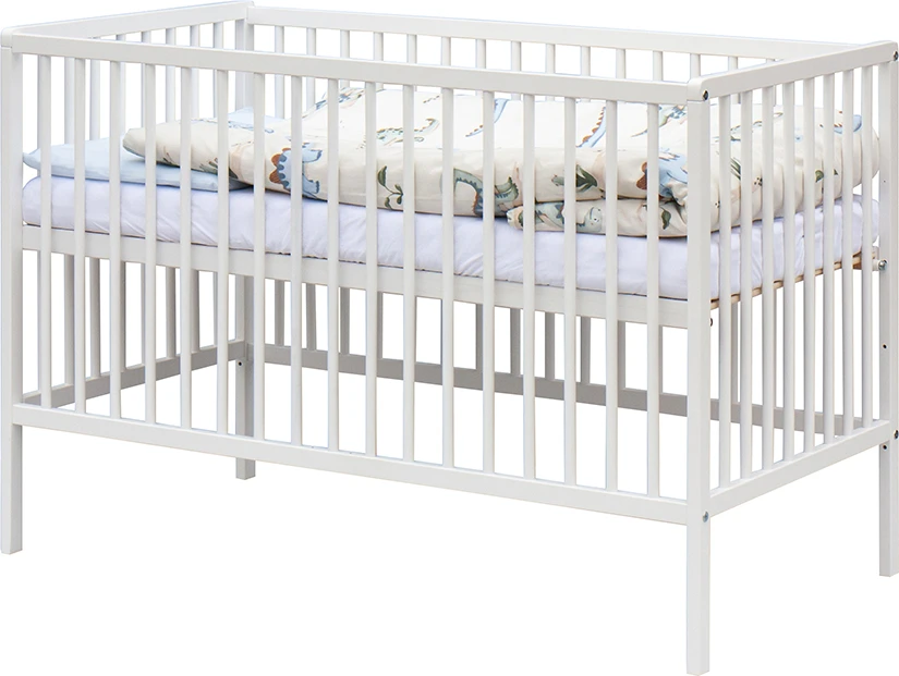 Postieľka disponuje dvoma polohami roštu a tromi vyberacími priečkami, ktoré uľahčujú každodennú manipuláciu aj prispôsobenie podľa rastu dieťaťa. Súčasťou kompletu je matrac aj kompletná posteľná výbava, takže máte všetko potrebné prehľadne v jednom balení.