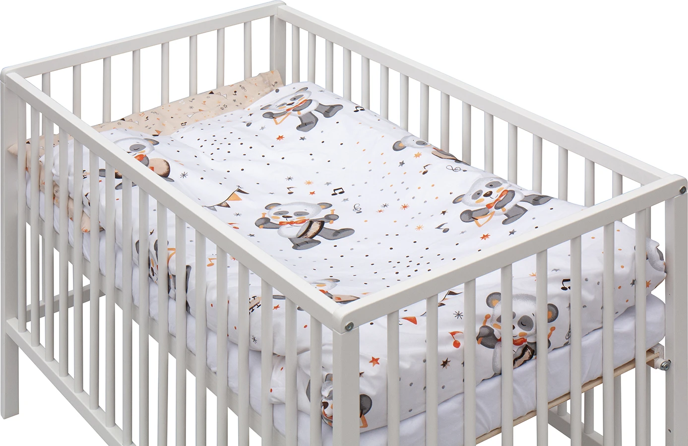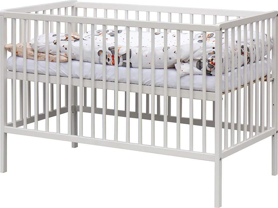 Postieľka disponuje dvoma polohami roštu a tromi vyberacími priečkami, ktoré uľahčujú každodennú manipuláciu aj prispôsobenie podľa rastu dieťaťa. Súčasťou kompletu je matrac aj kompletná posteľná výbava, takže máte všetko potrebné prehľadne v jednom balení bez starostí.