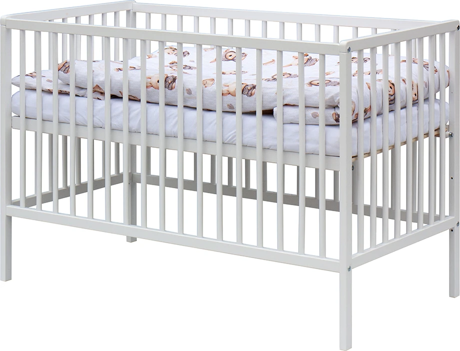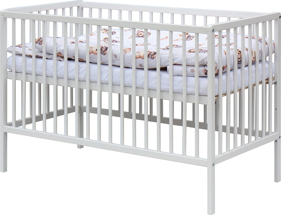 Postieľka je vybavená dvoma polohami roštu a tromi vyberacími priečkami, ktoré uľahčujú manipuláciu aj prispôsobenie podľa veku dieťaťa. Súčasťou kompletu je matrac a kompletná posteľná výbava, takže je všetko pripravené na okamžité použitie.