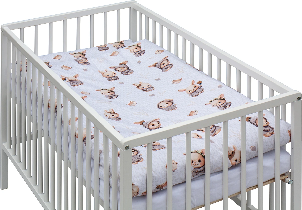 Detská postieľka s kompletnou výbavou biela 120 x 60 cm Zajačik šedý Scarlett