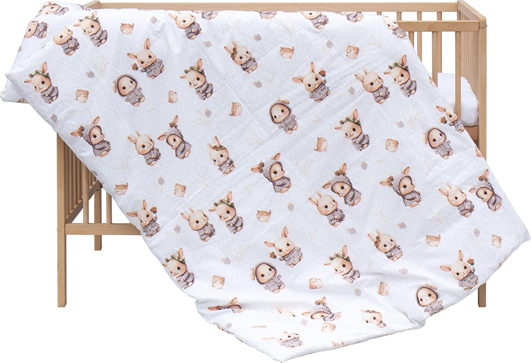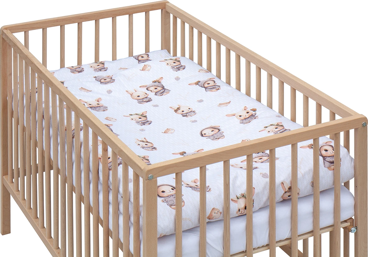Detská postieľka s kompletnou výbavou prírodná 120 x 60 cm Zajačik šedý Scarlett