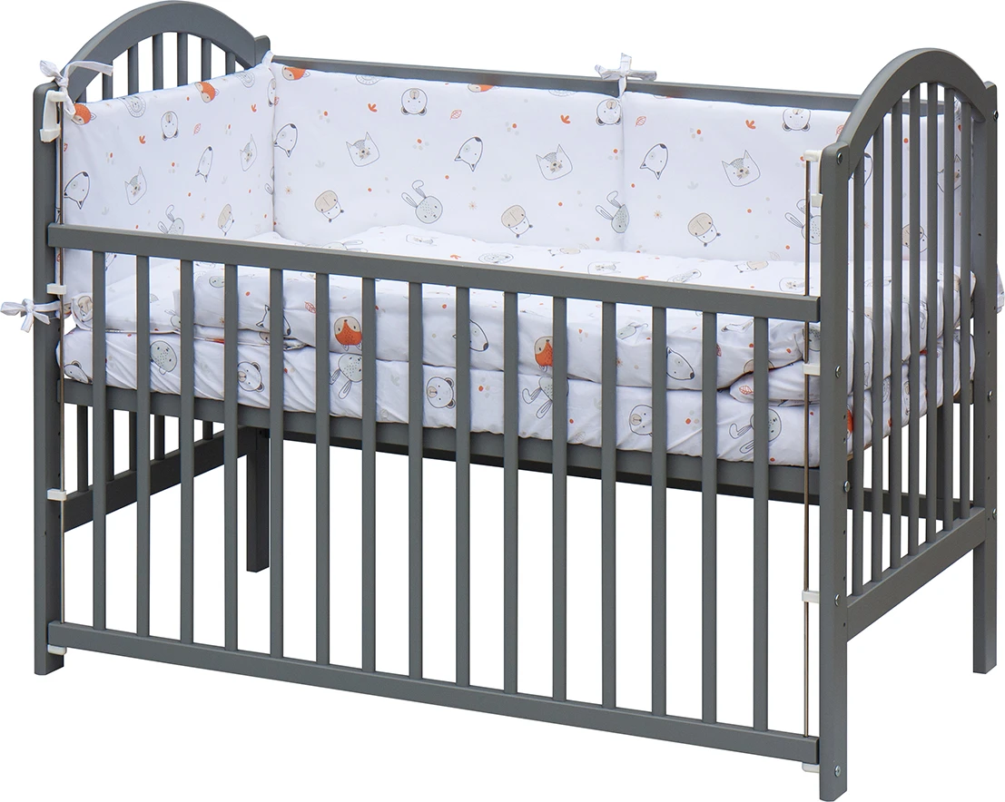Detská postieľka s kompletnou výbavou Scarlett 120 x 60 cm šedá - Labra je kvalitný produkt pre bábätká, vyrobený z bezpečných materiálov s dôrazom na pohodlie, funkčnosť a estetický vzhľad.