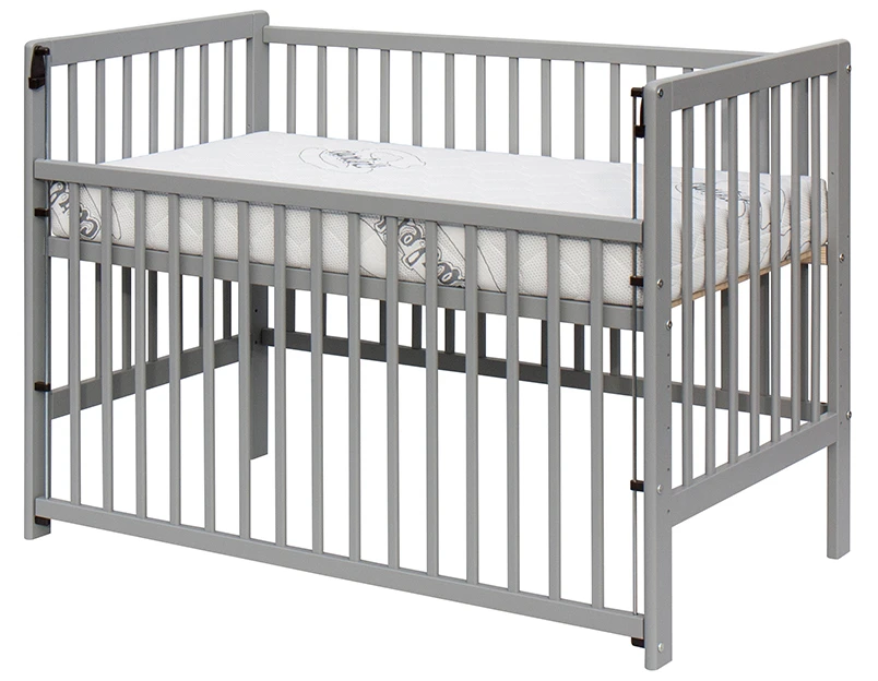 Detská postieľka - Scarlett DOMINIK (borovica), sťahovacia bočnica - 120 x 60 cm - šedá
