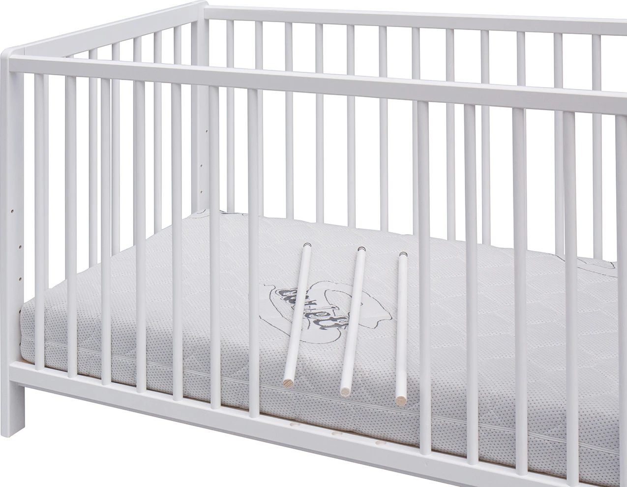 Kolieska, matrace ani váľendové bočnice nie sú súčasťou postieľky, ale je možné si ich objednať, podľa vašich potrieb, z našej ponuky.